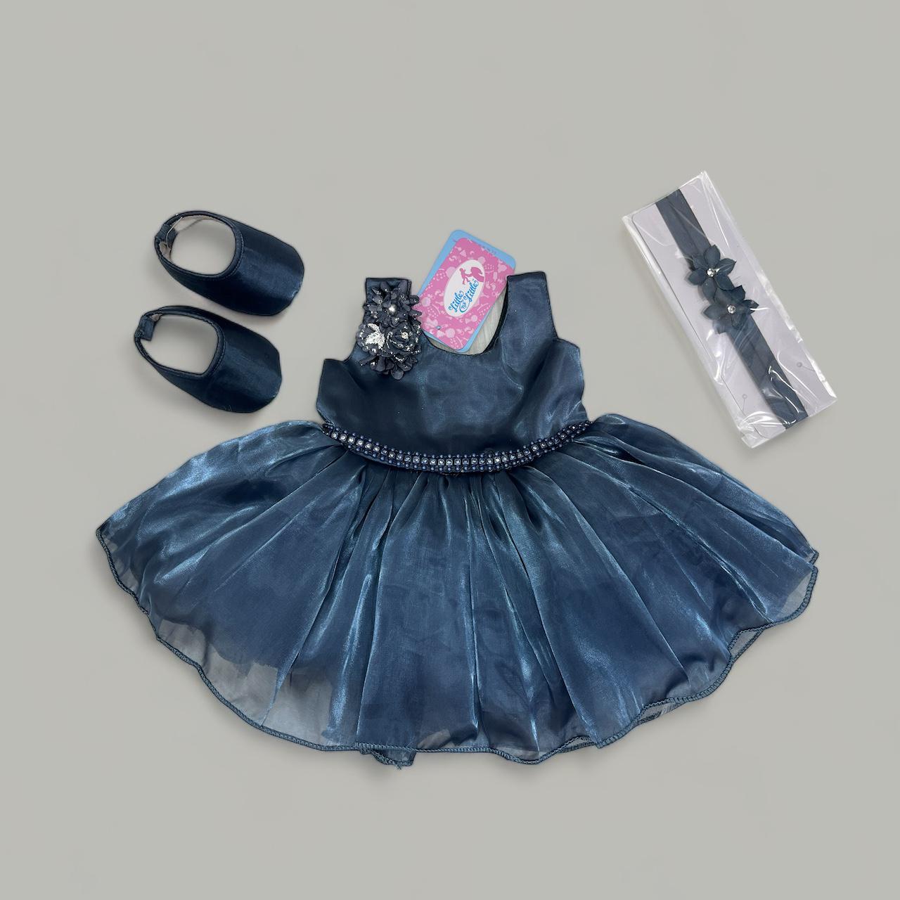 BLUE TISSUE FROCK WITH MATCHING SHOES AND HAIRBAND