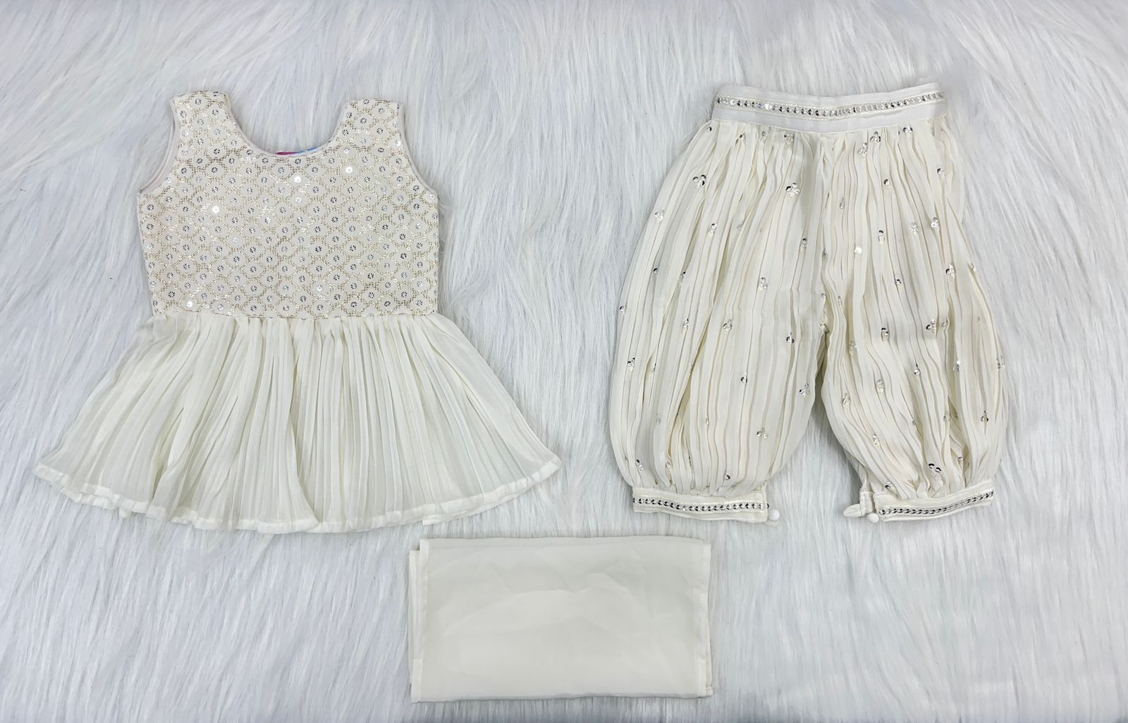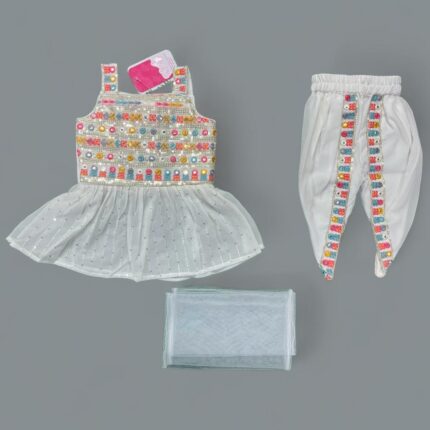 Little by Little Girls’s HERUM – Embrace Tradition with Contemporary Flair | SILK EMBROIDERY Material – WHITE/CREAM